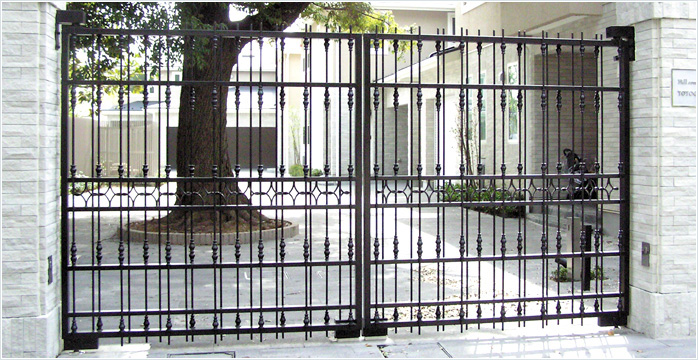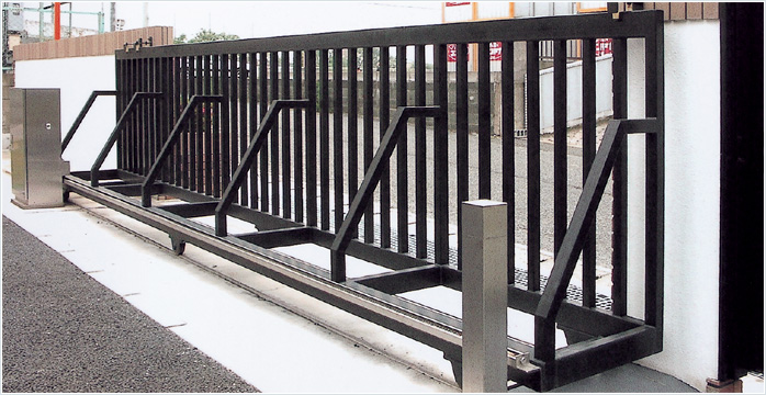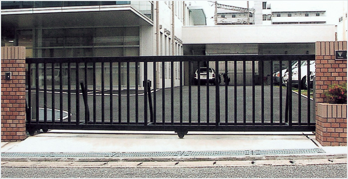 These superior and safe swing gates have their engines buried underground, ensuring a large opening width, while deceleration and control units enable smooth opening and closing operation. |