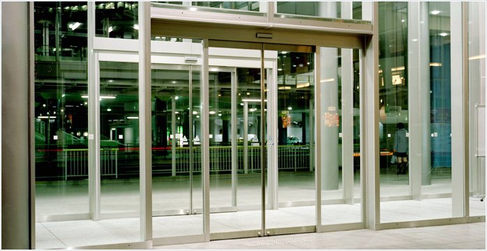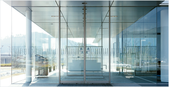 An original door developed to make full use of Teraoka’s automatic door know-how and technology. Slim Sanergy Door is equipped with energy-saving seals to reduce gaps and expand opening width, improving heating and cooling performance while repelling dust and other unwanted particles. It also uses reinforced glass, enhancing safety.